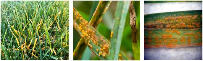 Агротехнические меры борьбы. Ржавчина одна из немногих болезней газона, определенные стадии которой (уредостадия) лучше протекают при недостатке азота. Отсюда первый рецепт борьбы — небольшая азотная подкормка. Не больше 250-300 гр./сотка карбамида, либо внекорневая подкормка 1% раствором того же карбамида. Кроме этого основное количество т.н. «уредопустул» (оранжевых подушечек со спорами) находиться в верхней трети листа, и небольшая стимуляция роста позволит скосить их. Основным периодом, когда болезнь проявляет себя это осень, август, «бабье лето», когда перепады между ночной и дневной температурой достаточно велики, хотя из каждого правила есть исключения. В 2015 году ржавчина наблюдалась и в конце мая.